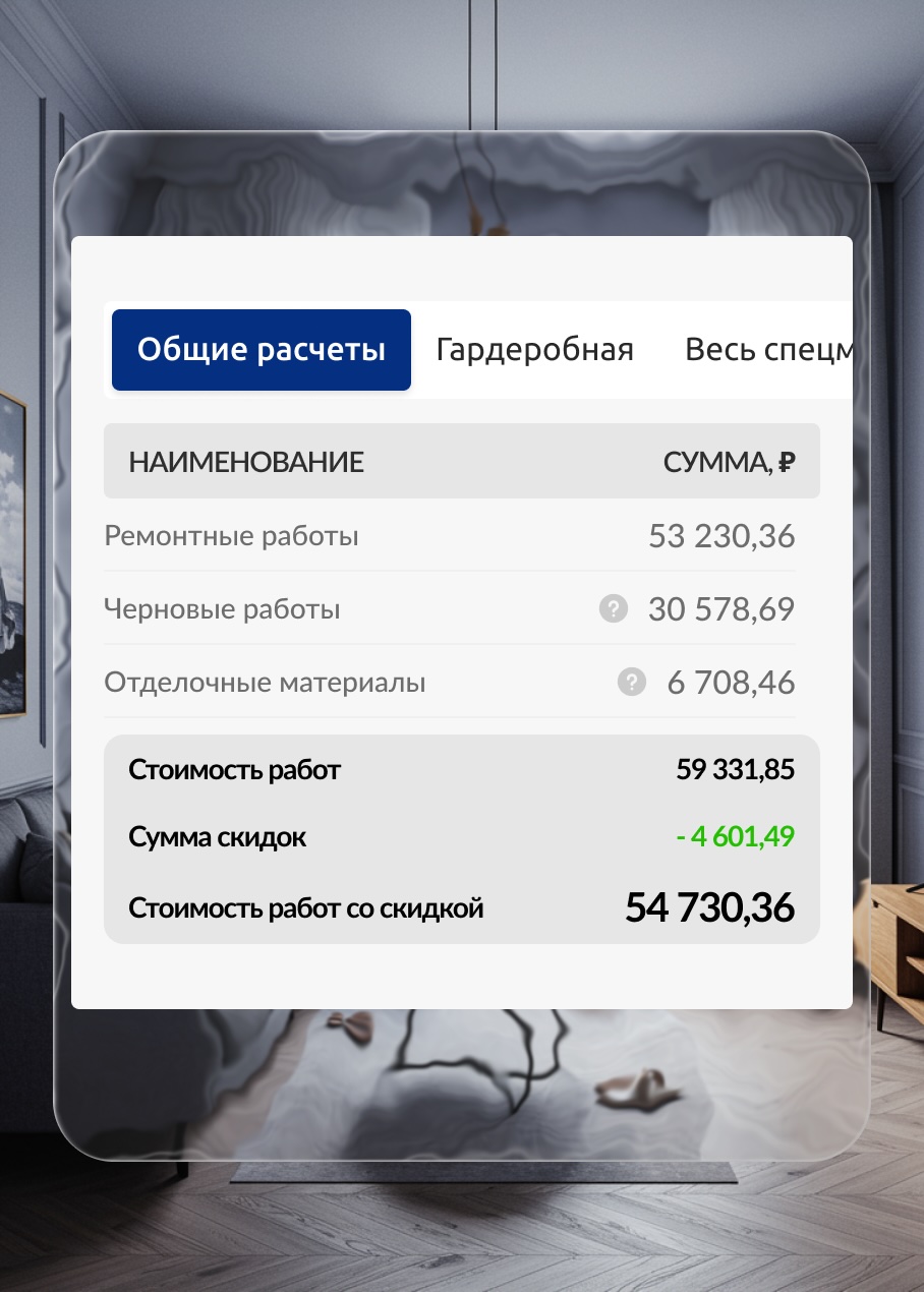 А-мега – единственная программа на рынке, которая точно рассчитывает ремонт. Мы разработали её сами, опираясь на 10-летний опыт работы в сфере ремонтов.